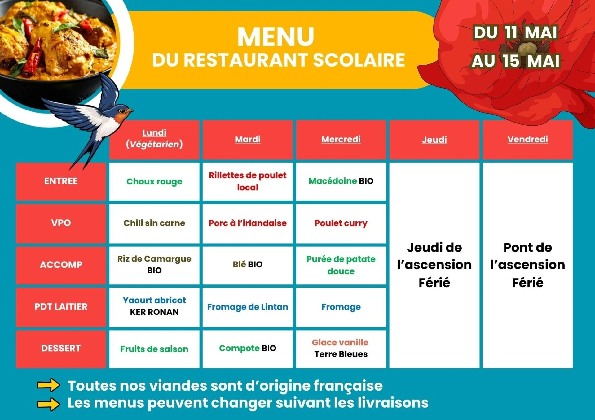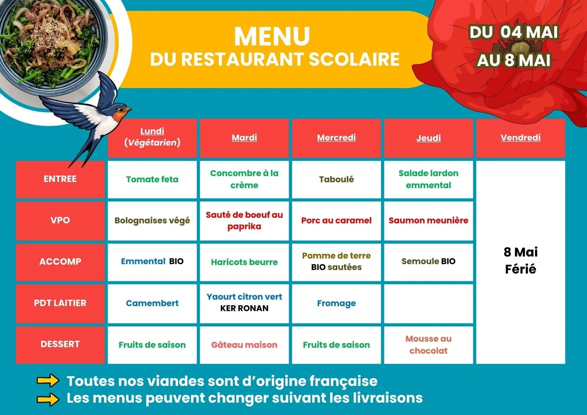 Retrouvez ci-dessous les menus par semaine, ainsi que le règlement intérieur du restaurant scolaire.